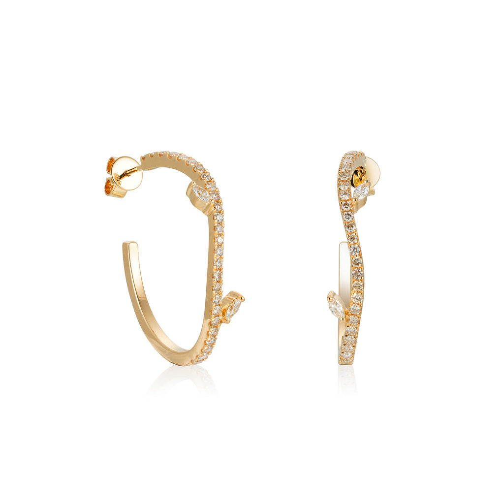 Experience the allure of our Celestial Foliage Diamond Earrings, an exquisite harmony between European grandeur and the lush embrace of nature. The intricately crafted branches, embellished with marquise-cut diamond leaves, add a touch of elegance to your appearance. Let these earrings accompany you on your special moments, as you bask in the luxury of their captivating beauty.