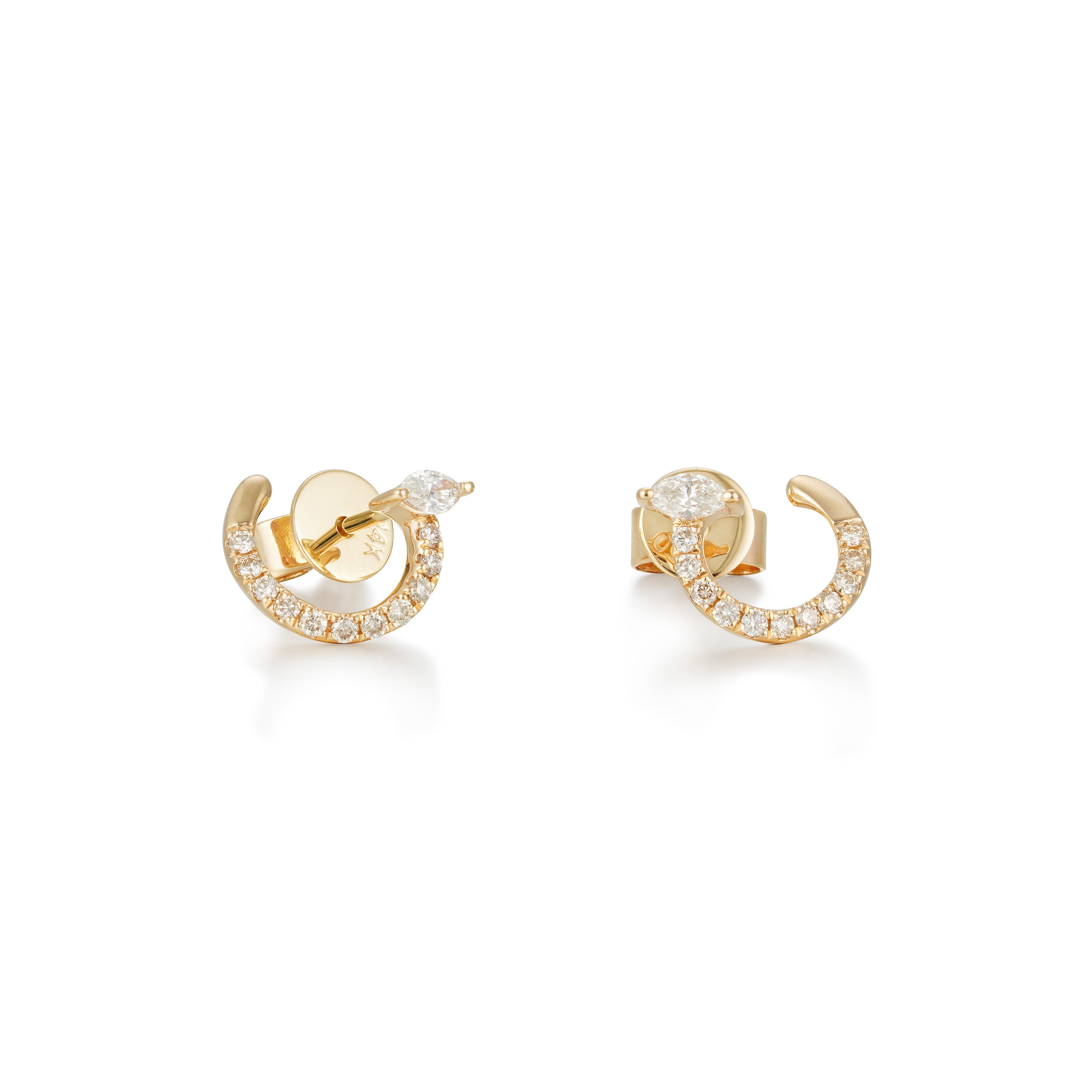 Step into the realm of luxurious living with our Marquise Mirage Diamond Earrings, where elegance and wearability intertwine. The marquise-cut diamonds at the tail end of these earrings create a mesmerizing play of light that beautifully complements any outfit. As you wear these everyday treasures, embrace the magic of feeling effortlessly opulent.