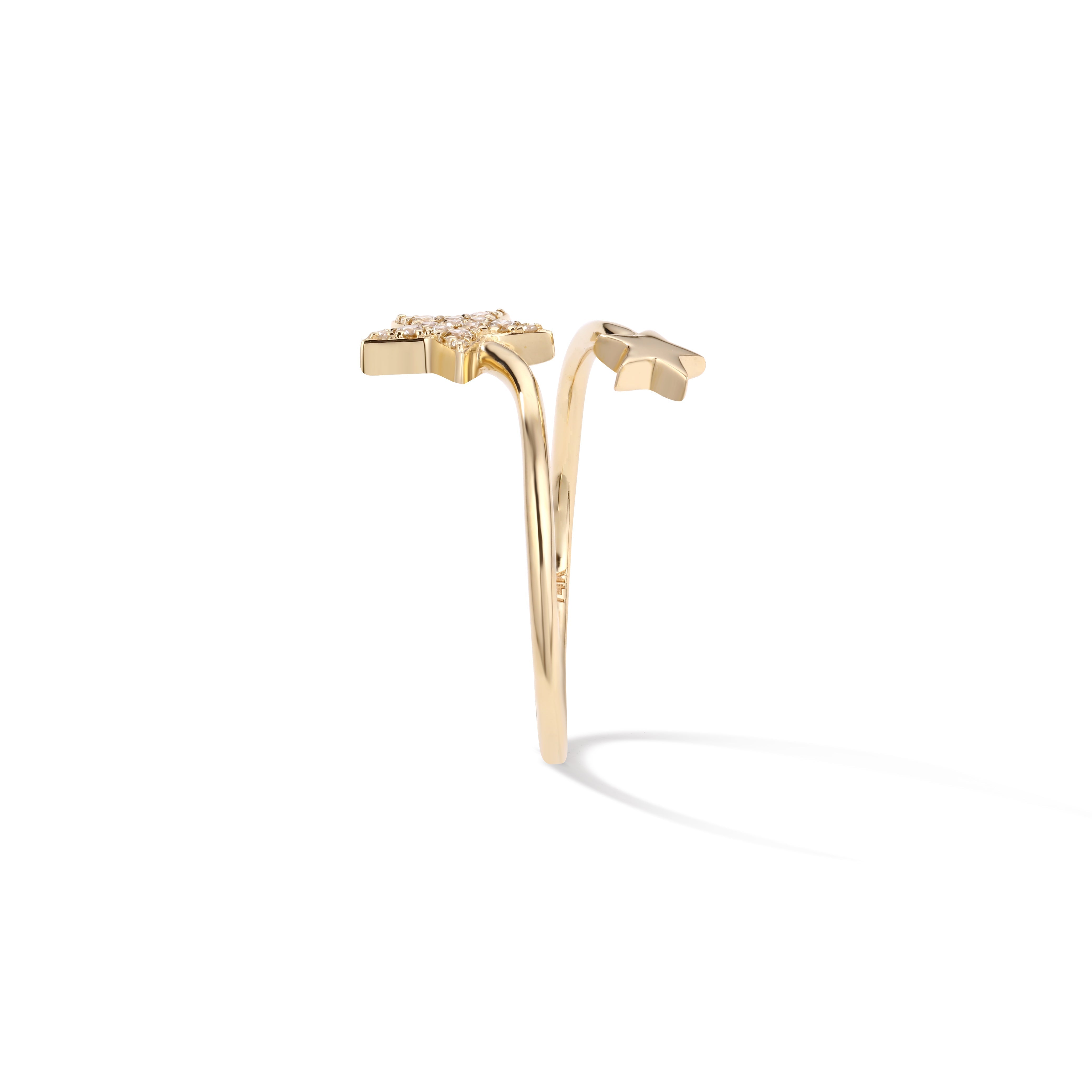 Embrace the allure of the night sky with this radiant diamond ring, featuring a shooting star motif. Its delicate design showcases meticulously crafted diamonds that resemble shimmering stardust, evoking a sense of celestial magic. This ring effortlessly combines fun and casual elegance, making it a must-have accessory for young trendsetters who desire a touch of sophistication in their everyday fashion. Let your style shine with the starlit splendor of this enchanting diamond ring and embrace the beauty of everyday luxury.
