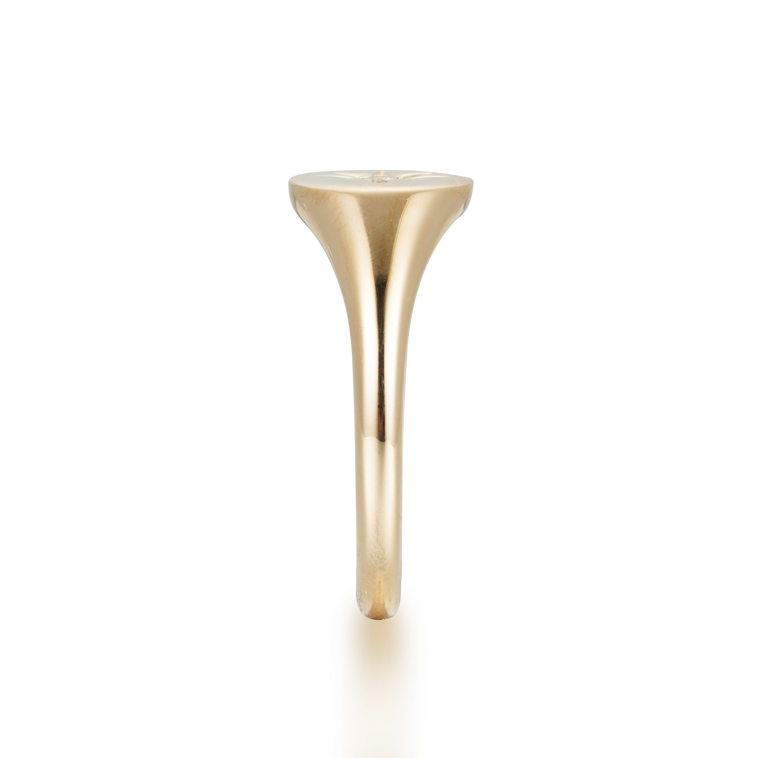 Introducing our Stellar Gold Signet Ring, a captivating blend of simplicity and beauty. This exquisite ring features a lustrous gold band, carefully crafted to perfection. The highlight is a single diamond elegantly set within a north star symbol, representing guidance and inspiration. Designed for the modern woman, this ring exudes a timeless elegance that effortlessly complements any style. Its understated charm and celestial symbolism make it a perfect accessory for those seeking both sophistication and inner strength. Embrace the allure of our Stellar Gold Signet Ring, and let its radiant beauty guide you on your journey of self-expression and empowerment.