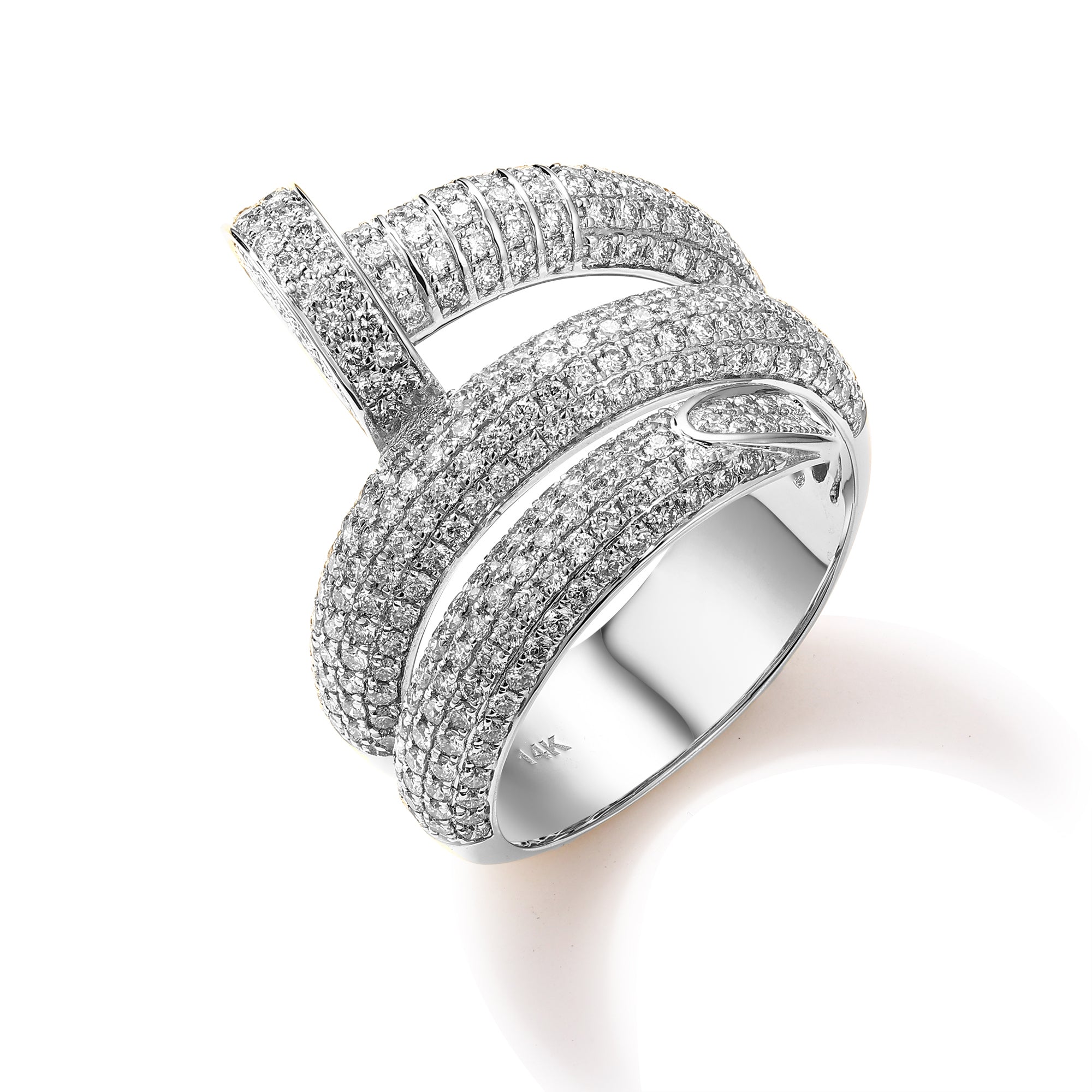 Embrace your reign as a diamond king with our Nail King Diamond Ring, a bold and luxurious representation of hip-hop-inspired style. The spiral nail design, embellished with dazzling diamonds, exudes a sense of power and confidence that sets you apart as a true hip-hop connoisseur.