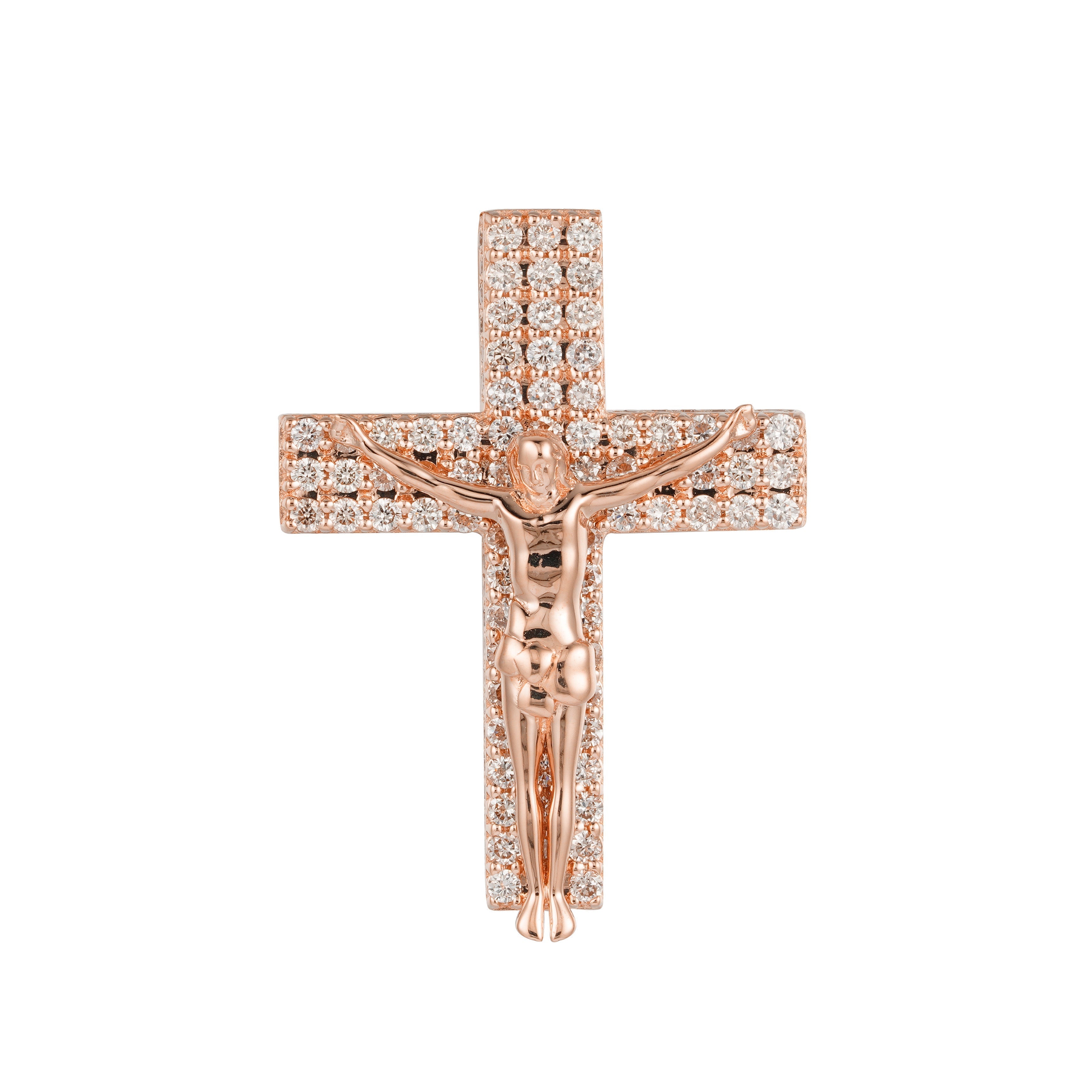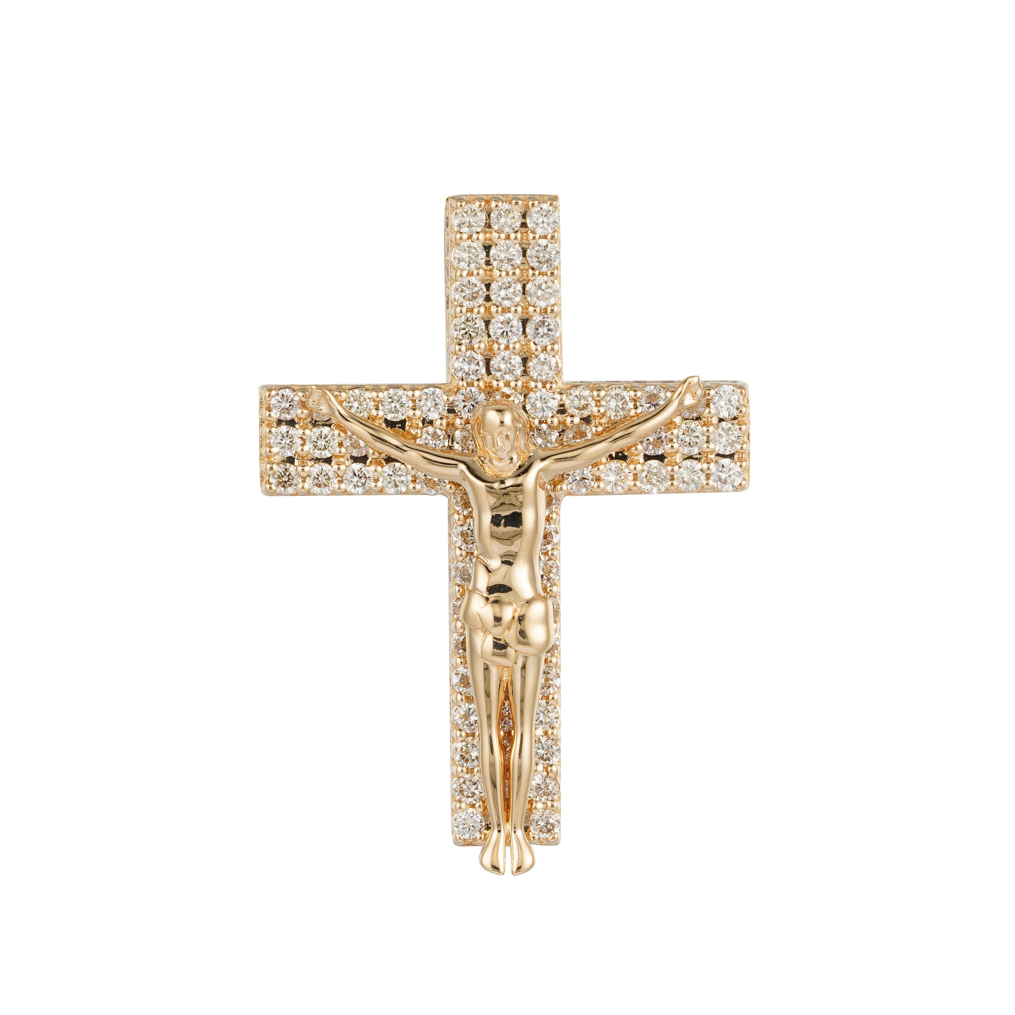 Unveil the essence of your faith with our diamond pendant, elegantly showcasing a radiant crucifix Jesus cross. As the diamonds shimmer and dance, they mirror the strength and purity of your devotion, allowing your inner light to shine brightly.